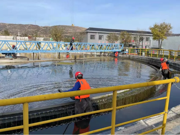 文明創(chuàng)建我先行——泓源城東污水處理公司全面清洗二沉池 全力保障出水達標排放